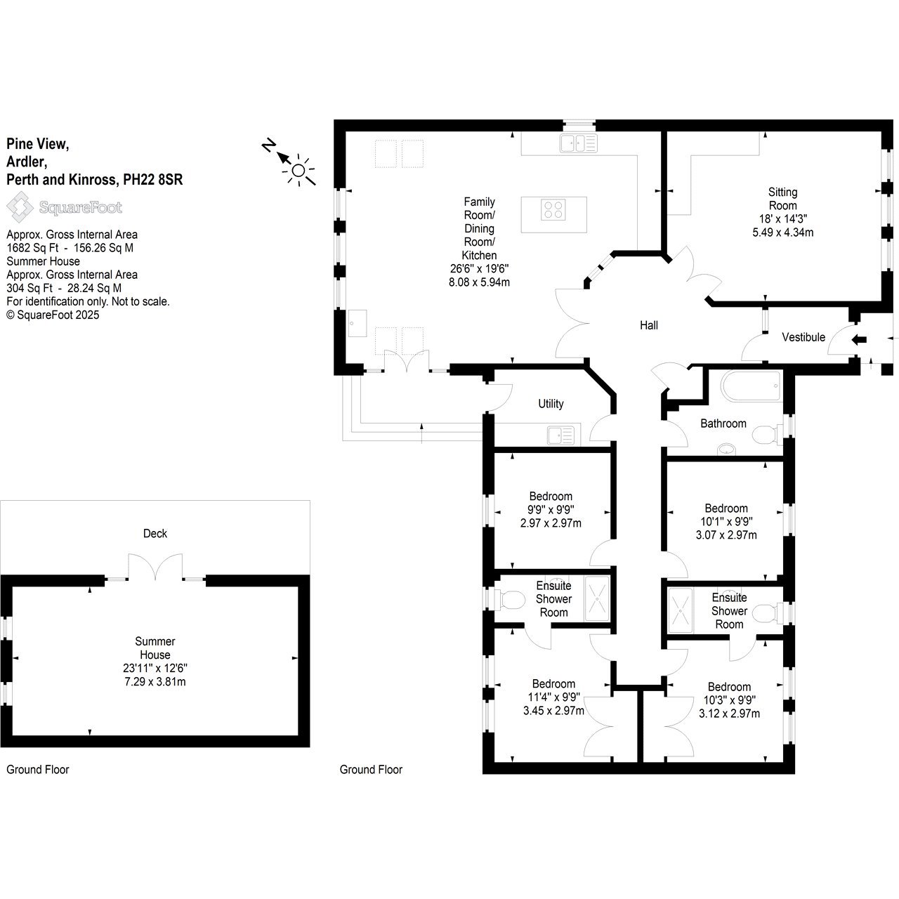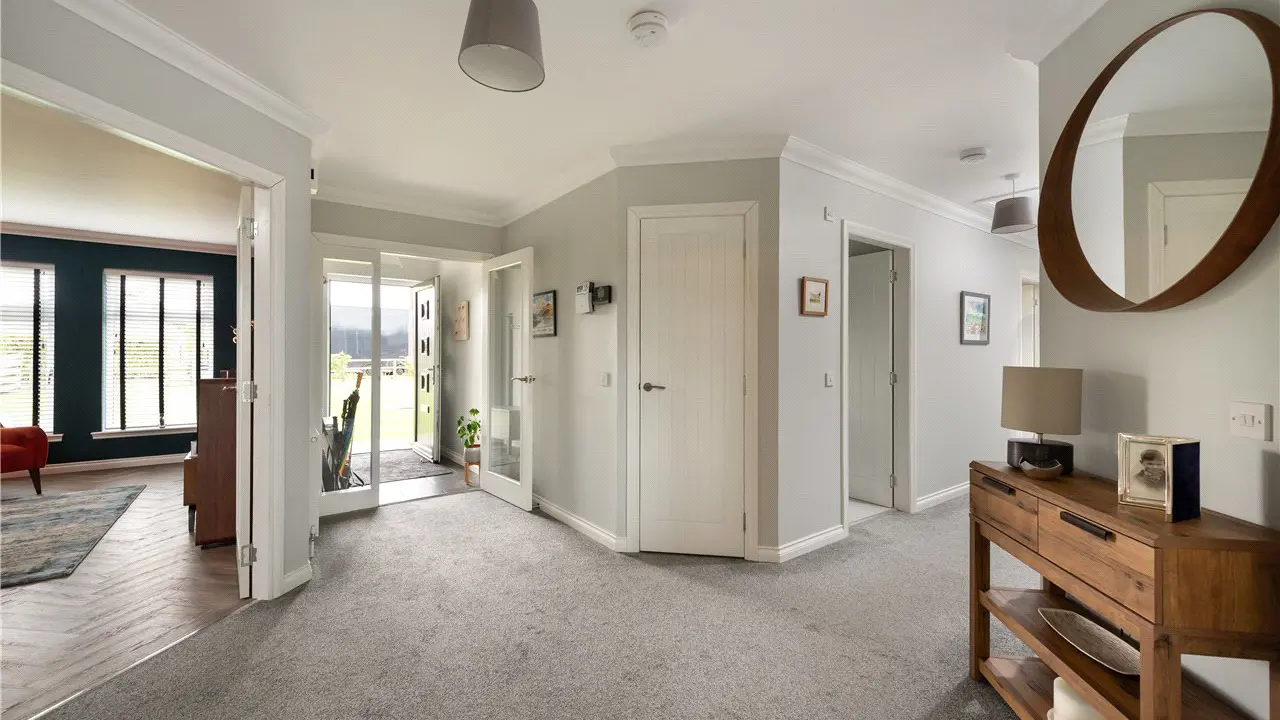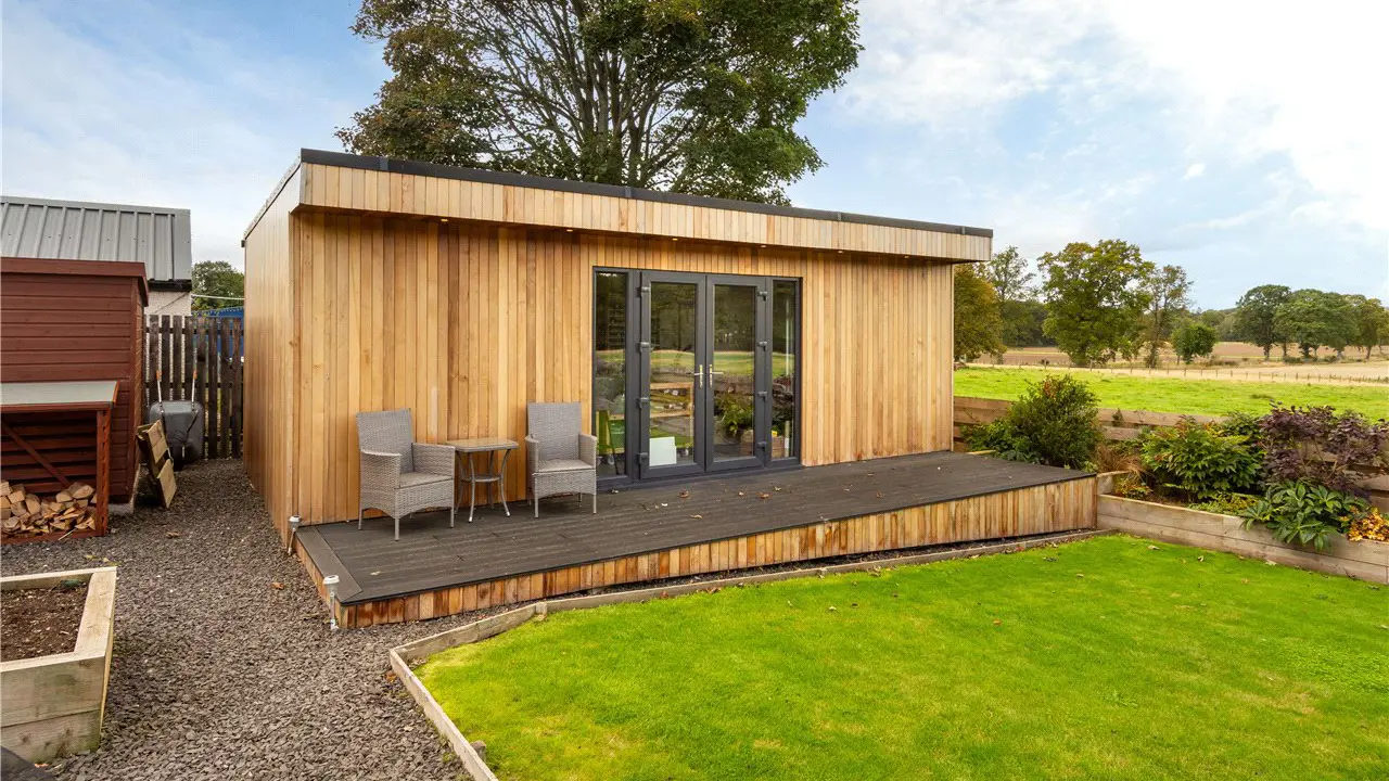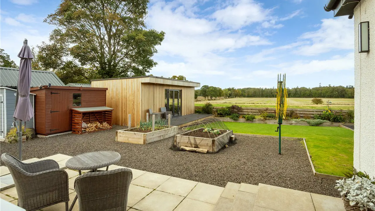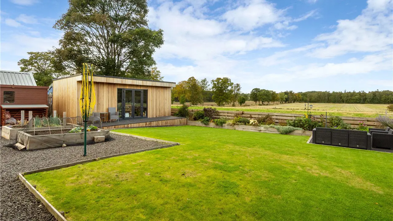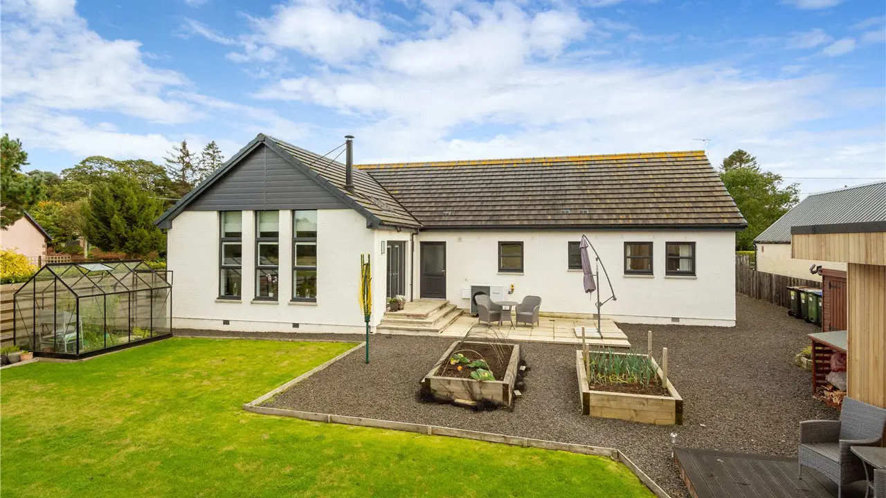 SITUATION Pine View lies in the heart of Ardler, a pretty village in the county of Perthshire and enjoys a superb position with lovely views of the surrounding countryside. Ardler is a superb village with a well-regarded dining pub and views of the Sidlaw Hills to the south and the Grampian Hills to the north. Day to day facilities can be found at the nearby village of Meigle, located approximately 2 miles east, and in the town of Coupar Angus to the west, which both benefit from a primary school, church, village shop and selection of cafes. The city of Dundee is the closest city and is situated about 13 miles to the south and provides an excellent range of facilities and services including two universities, shopping centres, a railway station and an airport. The city of Perth is equally convenient and is situated about 16 miles to the south west and provides an excellent range of services and facilities including national retailers, theatre, concert hall, banks and a Railway station. Edinburgh and Glasgow can both be reached in over one hour by car, with their international airports and vibrant city amenities.Perthshire is renowned for its wealth of recreational opportunities on the doorstep. The many hills and glens offer a wealth of walking and mountain biking routes, while winter sports can be enjoyed at Glenshee Ski Centre, located approximately 50 minutes north by car. For the golfer, there are numerous courses within a comfortable distance, including Blairgowrie, Alyth and multiple in an around Perth.DESCRIPTION Pine View is an attractive contemporary home set over one floor providing lateral living throughout and has been finished to a high standard with quality fixtures and fittings throughout. The entrance vestibule and hall leads directly to the reception spaces and accommodation. The reception space is a key feature of the house which is ideally suited for flexibility, entertaining and family living. The dual aspect kitchen / dining / sitting room has doors leading into the garden with a double height ceiling benefiting from a lot of natural light and wonderful garden views. A formal sitting room lies adjacent and has been tastefully decorated to provide a cosy reception space. The ground floor is complete with the principal bedroom with an ensuite, a double guest bedroom with an ensuite, an additional 2 double bedrooms and a family bathroom. There is also a useful utility room. ACCOMMODATION Ground Floor: Entrance Vestibule, Hall, Sitting Room, Kitchen/Dining Room/Sitting Room, Utility Room, Principal Bedroom with En Suite, Double Bedroom with En Suite, 2 Double bedrooms, Family Bathroom. GARDEN Pine View sits in the centre of a lovely plot and is pleasantly set back from the main road. To the front is a generous gravel parking area with ample room for multiple cars. The lawn is well maintained and a hedge has been planted providing privacy. To the rear is a delightful garden which has been designed for the property, there is a lovely lawn with raised borders around the edge and a pretty sun deck with superb views over the surrounding countryside. Sitting within the garden is also the garden room, a great space which has a myriad of possible uses and has been built to a very high standard. Fully insulated with big windows overlooking the garden it is a super addition to the property.