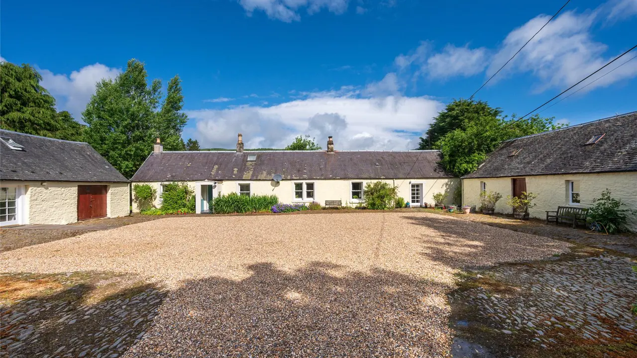 SITUATION Menzion Farm sits in a stunning location outside the pretty village of Tweedsmuir in the Scottish Borders. There is no shortage of beauty in the surrounding countryside and the property enjoys over half a mile of frontage onto the River Tweed. There are plentiful opportunities for outdoor pursuits in the area, including great routes for walking and cycling. The active community opened the Wee Crook café as a vibrant village hub in 2023 on the site of the famous Crook Inn, where Rabbie Burns used to write. Eight miles north of Tweedsmuir is the village of Broughton, with the local Primary School, Community shop, Tea Room and garage. The market town of Biggar is five miles west of Broughton and all necessary services and amenities can be found here alongside many independent retailers. Secondary school children would travel by bus to Peebles High School following their primary education at Broughton.Further afield, Peebles offers yet more retail and cultural opportunities as well as the world famous Glentress mountain bike venue. The A74 Motorway is only 16 miles away and gives direct access to the NW of England. METHOD OF SALE Menzion Farm is offered for sale as a whole.DESCRIPTION Menzion Farm is an attractive courtyard of buildings and offers opportunities for small-scale farming and equestrian use. The approximately 30 acres of pasture has been used in recent years for sheep grazing and conserved forage, and ranges from 4.1 to 5.2 according to the James Hutton Institute of Land Classification. The elevation of Menzion Farm lies between approximately 255 metres (838ft) and 276 metres (907ft). Main House: The main house was built in c.1850 and is approached from a private gravel driveway. It offers flexible family accommodation over one level, extending to 129.8sq.m. The lounge has a wealth of natural light and the stove is a focal point of the room. There are three double bedrooms and family bathroom. The dining kitchen offers a range of wall and base units and doors to both the rear garden with seating area, a perfect spot for morning coffee, and to the courtyard. The accommodation comprises: Sitting room, kitchen/dining room, 3 bedrooms, rear porch/utility, separate WC with hand basin, family bathroom. Annexe: There is a self contained annexe to the south/west of the cottage with garage/outbuilding attached, which was converted from historic outbuildings in 2009, and offering potential for holiday let and commercial income. The lounge/dining kitchen has a range of wall and base units and space for wood burning stove. The annex benefits from under floor heating. The accommodation comprises: Kitchen/living area, bedroom and bathroom, there is an internal door leading to a useful outbuilding. Garden The large garden behind the main house is laid out as two areas of lawn with mature trees and shrubs and a productive vegetable garden with fruit bushes and a greenhouse. OUTBUILDINGS To the north east of the house there are a byre and a former laundry with sinks and a WC, which are currently utilized as a workshop/store and offer further development opportunities.LAND Menzion Farm extends to approximately 12.88 Ha (31.83 Acres) in total including yards and buildings. The land comprises of permanent pasture which has been principally classified as Grade 4.1 and 5.2 by the James Hutton Institute. The land rises from approximately 255m above sea level at its lowest point to approximately 276m above sea level at its highest point. The current field configuration is of seven paddocks bordering the River Tweed behind the house. The fields are serviced with several natural water supplies and are well fenced but also with some well-crafted dry stone dykes.The land is a mixture of pasture, grazing and riverbank. The land has been successfully let out for grazing on short-term leases.