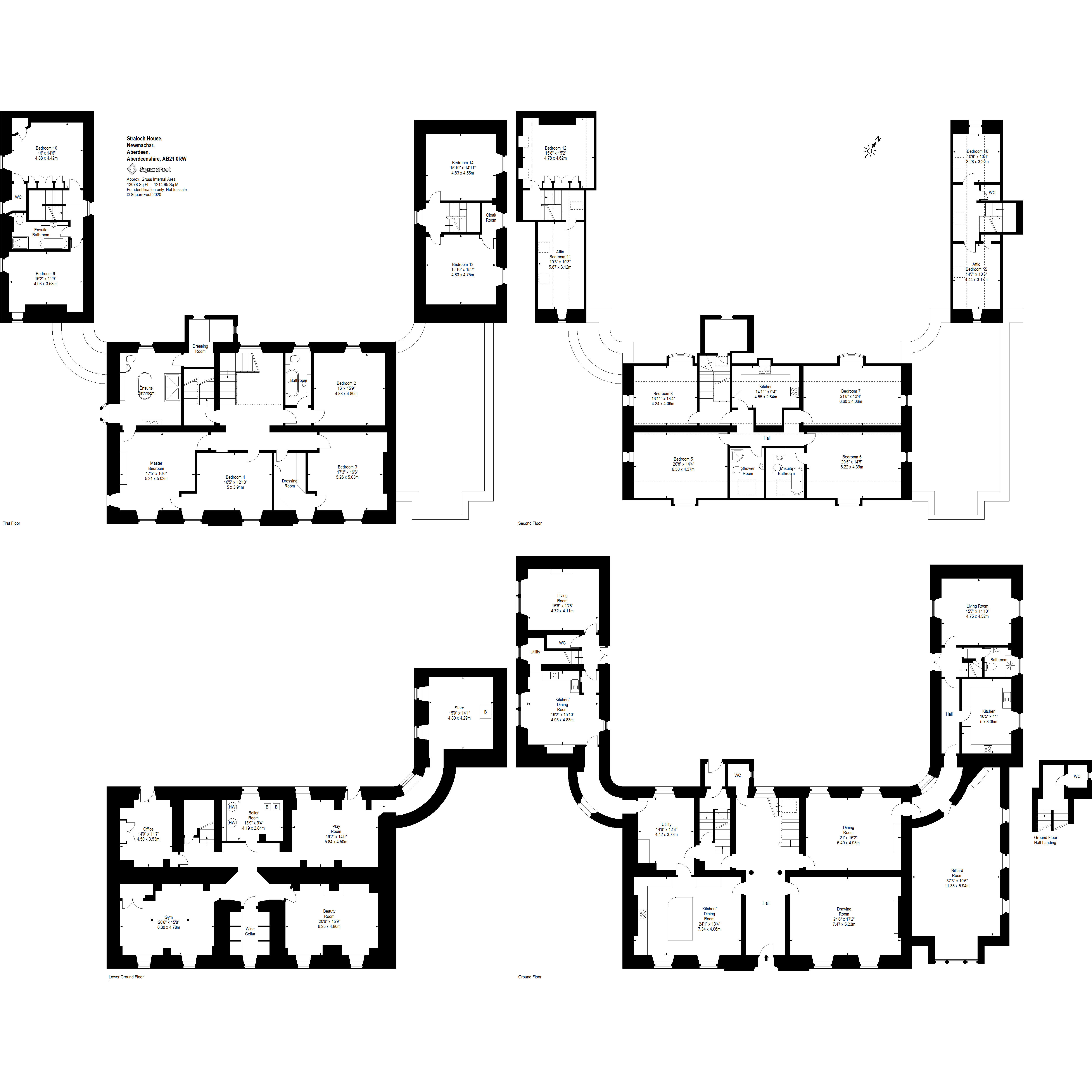 STRALOCH HOUSEOriginally built around 1780, Straloch House is a beautiful Category ‘A’ listed mansion house sat in the heart of the private estate grounds and woodland. Particularly handsome, the main front elevation has a southerly aspect with a symmetrical design and attractive stone steps leading to the front door. The centre block continues through to both the East and West wing at right angles and this clever flow ensures the wing accommodation ispart of the main house, or equally is separated if preferred. The centre of the home primarily houses the reception rooms and main bedrooms, whilst both the West and East wing have selfcontained access and almost mirroring accommodation.The present owners fell in love with Straloch House in 2009 and since then have thoughtfully and carefully refurbished the mansion house to an exemplarily standard. Primary areas were addressed first and foremost including a new roof across the main house and wings, new central heating systems and new timber windows. Following this, the inside of the home was refurbished including hand crafted kitchen, luxury bathrooms, beautiful open fires, elegant decor and Italian marble floor tiles to the ground floor, to only name a few. The entire scope of work has been completed to an exceptional standard, for which Straloch House and its stature deserves. Thus, allowing any potential buyer of Straloch House Estate the rare opportunity to acquire a historic mansion house in impeccable condition.Beyond the main house there is a separate detached gate lodge, private historic chapel and laundry building with garage. Straloch House looks proudly over its rolling policy grounds and private lochan, whilst the beautiful walled garden offers an air of tranquillity and charm. Paths, bridges and streams meander through the established woodland and garden grounds, whilst the outdoor hot tub house adds a modern luxury. Straloch House is approached via electric gates and a tarmac driveway. The private entrance driveway is flanked by the estates private land and woodland and sweeps round the house to the main parking area. MAIN ACCOMMODATIONLower Ground Floor: Gym, play room, beauty room, wine cellar, office, store room & boiler room. Ground Floor: Reception hall, drawing room, dining room, billiard room, dining kitchen, utility room & cloakroom.First Floor: Master bedroom with ensuite bathroom and dressing room, three double bedrooms, one with dressing room. Bathroom.Second Floor: 4 double bedrooms, bathroom, shower room & kitchen.WEST WINGGround Floor: Lounge, dining kitchen & cloakroom.First Floor: Bedroom with ensuite bathroom and bedroom with cloak room.Second Floor: Two double bedrooms. EAST WINGGround Floor: Lounge, dining kitchen & Shower room.First Floor: Two double bedrooms and cloakroom.Second Floor: Two double bedrooms and cloakroom.POLICIES & GARDEN GROUNDSThe policies and garden grounds at Straloch House Estate have been carefully laid out and maintained with rolling lawns surrounding the main house and many fine specimen trees scattered throughout offering a high degree of privacy and shelter. The land extends to around 63.36 acres (25.64 hectares) or thereby. A sheltered courtyard lies nearest the house to the rear with a large water fountain and there is a stylish decked area with large timber hot tub shelter and outdoor relaxation area.WALLED GARDENThe Walled Garden extends to approximately 2 acres and lies to the north of the main house. With high imposing stone walls, the walled garden is a vast sheltered area with huge potential and with a variety of trees, shrubs and hedging. There are door entrances from both the North & South side and the original drive way to the house runs parallel to the walled garden on the east side and could easily be restored to create an alternative entrance to the estate.LOCHANThe charming lochan is positioned to the South and attracts a wide range of wildlife throughout the year.OUTBUILDINGSLocated to the East of the main house is the laundry being a traditional detached stone building with loft storage.GARAGEAdjoining the laundry building is a single garage and dog run.PRIVATE CHAPELWith an elevated position and nestled on the edge of the woodland, the private chapel is positioned to the south east of the main house and is a charming private chapel dating back to around 1908. The chapel was built by Mrs Irvine of Drum in a quaint style with granite walls and slate roof. Laced in ivy, the chapel retails many original features internally including the parquet flooring and high vaulted ceiling.GATE LODGELocated at the main entrance to Straloch House Estate, this is a pretty and attractive cottage with charming diamond pane windows and over hanging eaves. The Gate Lodge would be ideal as staff accommodation, as a holiday let opportunity or as additional accommodation.ACCOMMODATIONGround Floor: Hall, sitting room, kitchen, two bedrooms and bathroom.SERVICES, COUNCIL TAX AND ENERGY PERFORMANCE CERTIFICATE(S)Straloch House Water Mains Electricity Mains Drainage Septic Tank Heating OilCouncil Tax Band H EPC EGate Lodge Water Mains (private supply pipe) Mains Drainage Septic Tank Heating Electric Council Tax Band DEPC GThree separate electricity supplies; one to the main house and one to each wing. The same applies for the central heating system with the main house, west wing and east wing on individual systems.HISTORIC SCOTLANDThe following are listed as being of architectural or historic interest.Straloch House Category AGate Lodge Category BWalled Garden Category CPolicies Category CSITUATIONStraloch House Estate is located North-West of Aberdeen and enjoys a highly private and sheltered position surrounded by its own expansive parkland and well established woodland, yet is only 5 miles from Aberdeen International Airport, creating aperfect balance. The closest village of Newmacher is only 2.4 miles away and provides excellent day-to-day amenities including shops, chemist, sport cen