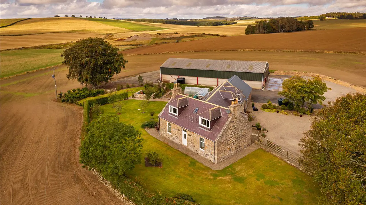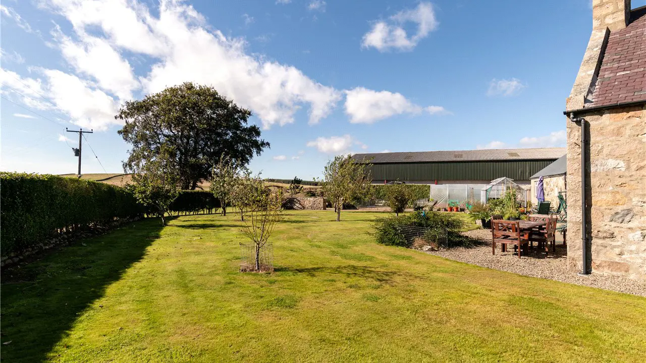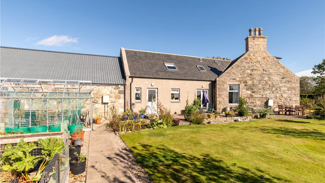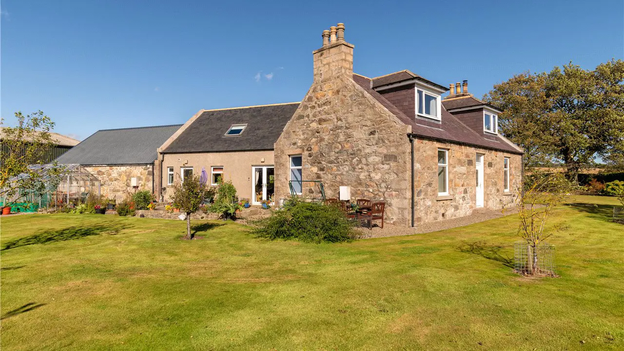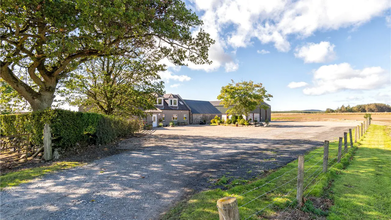 Knaps has an idyllic countryside location, close to the village of Newmachar, with beautiful open views and a feeling of space and privacy. Knaps is approached by the private track and there is a traditional detached 5 bedroom farmhouse with beautiful garden grounds and a superb multi-purpose agricultural shed. The land surrounds the property entirely and extends to around 10.17 acres (4.11 hectares), and has been sown to grass very recently with good fencing. For those with equestrian interests, Knaps would work exceptionally well given the superb outbuilding which could accommodate a large amount of stabling. The entire land & outdoor space at Knaps really does create endless opportunities and flexibility for any potential buyer to create their own wonderful countryside lifestyle.Knaps Farmhouse is a traditional stone built farmhouse with a south west aspect and beautiful tended garden grounds. The property has been exceptionally well maintained by the present owners including a considerable extension, joining the original farmhouse to a traditional steading in 2009, to greatly increase the accommodation and size of the home. The accommodation over two floors comprises an entrance vestibule and entrance hall. Continue to the left into the original farmhouse where you will find the main lounge, overlooking the garden and a wood burning stove. The family room has a side aspect and could easily be a 6th bedroom if required. Also overlooking the front gardens is the fifth double bedroom, which is an exceptionally spacious room. Also located here is the modern shower room. Returning to the entrance hall continue right into the new part of the home where you will find the dining kitchen. This is a wonderful room offering a ‘modern country kitchen’ with high quality units & plenty worktop space. There is space to have both dining & family seating and french doors open out to garden patio. A great feature of this space is the walk-in kitchen larder, being a very useful space. Continuing through, a home office room is to one side and a utility room, with garden access, to the other. Lastly on the ground floor, is an extremely useful and handy workshop space which could have various uses. Double external doors give access outside and this room houses the water filtration system.On the first floor there is a bright open landing with two sky light window drawing in light. There are two equally spacious double bedrooms with built in storage, both enjoying an outlook to the front overlooking the surrounding countryside. Further down the hall is the main family bathroom and the fourth bedroom with built in cupboard. Completing the accommodation is the principle bedroom with excellent storage and a generous ensuite shower room.ACCOMMODATIONGround Floor: Vestibule, entrance hall, lounge, family room, bedroom 5 & shower room. Dining kitchen with larder, utility room, home office & workshop.First Floor: Master bedroom with ensuite shower room, double bedroom 2, double bedroom 3 & bedroom 4. Family bathroom.GARDEN GROUNDSKnaps sits in garden grounds that have been beautifully created & designed by the present owners. A sheltered patio lies closest to the house, ideal for garden furniture, with a path leading to the kitchen garden area. Here there are fenced vegetable beds, a greenhouse and polytunnel with raised beds and irrigation system inside. A side gate leads to the agricultural shed.The rolling grass lawn continues round the side to the front of the original cottage bound by mature neat hedging. There is a scattering of mature & successful fruit trees, including apple & plum, and offers a wonderful outdoor space for family and children to enjoy. Plenty parking is available to the front of Knaps Farmhouse.LAND & OUTBUILDINGSKnaps sits in around 12.73 acres in total. Around 10.17 acres of land have been sown to grass and is mostly fenced.The modern 30m x 12.8m multi-purpose agricultural shed was added in 2010. Ideal for multiple uses, this shed could easily accommodate horse stabling if required.SERVICES, COUNCIL TAX AND ENERGY PERFORMANCE CERTIFICATE(S)Water PrivateElectricity MainsDrainage Septic TankTenure FreeholdHeating Oil CHCouncil Tax Band BEPC Band CPlease note the council tax band could be subject to change.LOCATIONKnaps is located amongst the beautiful Aberdeenshire countryside northwest of Aberdeen. The closest village of Newmacher is only 5 minutes drive away and provides excellent day-to-day amenities including shops, chemist, sport centre, library, post office and thriving community with numerous clubs and societies. Schooling is provided at Newmachar Primary School whilst secondary education is catered for at Dyce Academy.Lying approximately 10 miles to the South-East is the city of Aberdeen which offers endless art, culture and events including His Majesty’s Theatre and the recently re-opened Aberdeen Art Gallery, which has undergone a once-in-a-life-time £30m transformation. There are restaurants, bars, coffee shops and major national retailers together with a railway and bus station. Private education is available in Aberdeen at Robert Gordon’s College, St. Margaret’s school for Girls, Albyn School and the International School of Aberdeen.