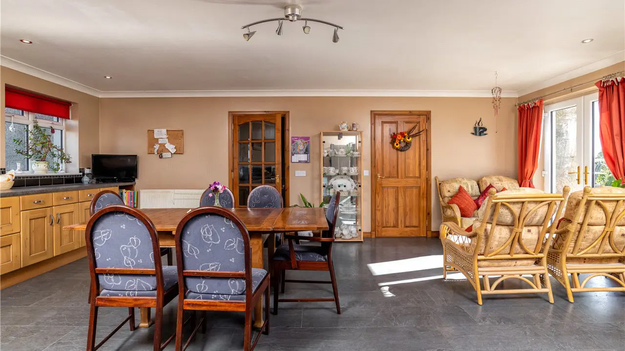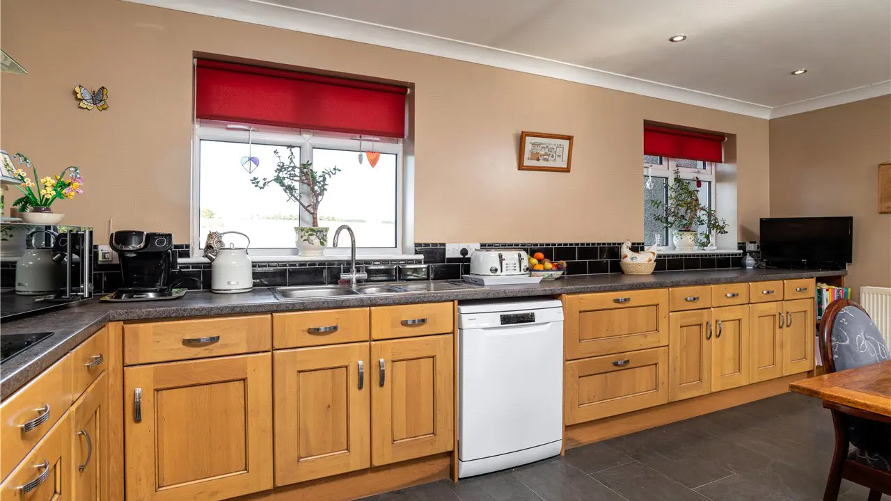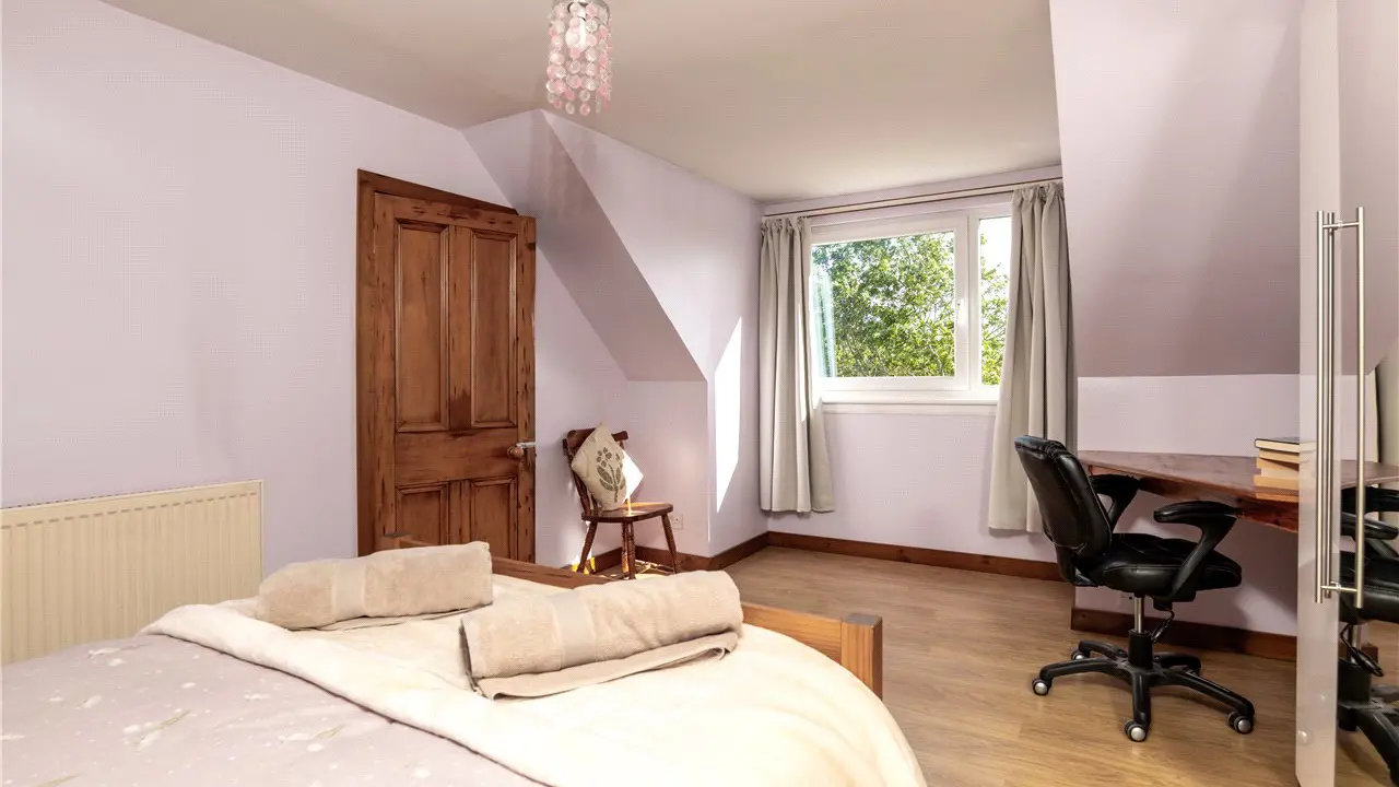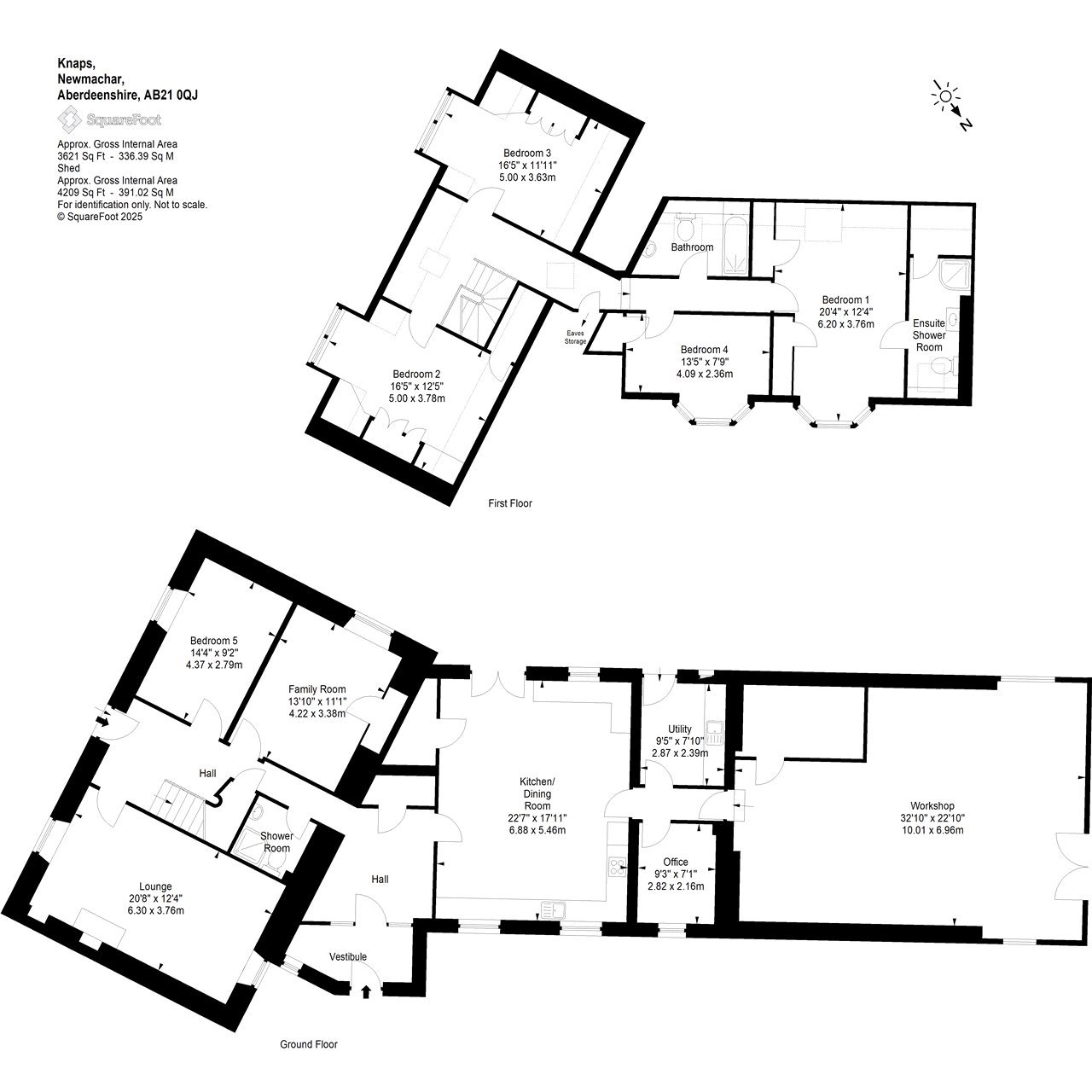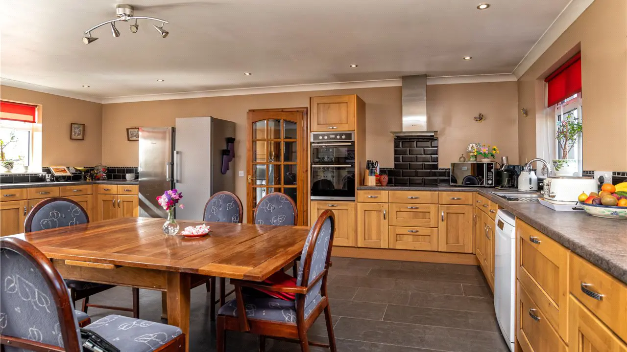 Knaps has an idyllic countryside location, close to the village of Newmachar, with beautiful open views and a feeling of space and privacy. Knaps is approached by the private track and there is a traditional detached 5 bedroom farmhouse with beautiful garden grounds and a superb multi-purpose agricultural shed. The land surrounds the property entirely and extends to around 10.17 acres (4.11 hectares), and has been sown to grass very recently with good fencing. For those with equestrian interests, Knaps would work exceptionally well given the superb outbuilding which could accommodate a large amount of stabling. The entire land & outdoor space at Knaps really does create endless opportunities and flexibility for any potential buyer to create their own wonderful countryside lifestyle.Knaps Farmhouse is a traditional stone built farmhouse with a south west aspect and beautiful tended garden grounds. The property has been exceptionally well maintained by the present owners including a considerable extension, joining the original farmhouse to a traditional steading in 2009, to greatly increase the accommodation and size of the home. The accommodation over two floors comprises an entrance vestibule and entrance hall. Continue to the left into the original farmhouse where you will find the main lounge, overlooking the garden and a wood burning stove. The family room has a side aspect and could easily be a 6th bedroom if required. Also overlooking the front gardens is the fifth double bedroom, which is an exceptionally spacious room. Also located here is the modern shower room. Returning to the entrance hall continue right into the new part of the home where you will find the dining kitchen. This is a wonderful room offering a ‘modern country kitchen’ with high quality units & plenty worktop space. There is space to have both dining & family seating and french doors open out to garden patio. A great feature of this space is the walk-in kitchen larder, being a very useful space. Continuing through, a home office room is to one side and a utility room, with garden access, to the other. Lastly on the ground floor, is an extremely useful and handy workshop space which could have various uses. Double external doors give access outside and this room houses the water filtration system.On the first floor there is a bright open landing with two sky light window drawing in light. There are two equally spacious double bedrooms with built in storage, both enjoying an outlook to the front overlooking the surrounding countryside. Further down the hall is the main family bathroom and the fourth bedroom with built in cupboard. Completing the accommodation is the principle bedroom with excellent storage and a generous ensuite shower room.ACCOMMODATIONGround Floor: Vestibule, entrance hall, lounge, family room, bedroom 5 & shower room. Dining kitchen with larder, utility room, home office & workshop.First Floor: Master bedroom with ensuite shower room, double bedroom 2, double bedroom 3 & bedroom 4. Family bathroom.GARDEN GROUNDSKnaps sits in garden grounds that have been beautifully created & designed by the present owners. A sheltered patio lies closest to the house, ideal for garden furniture, with a path leading to the kitchen garden area. Here there are fenced vegetable beds, a greenhouse and polytunnel with raised beds and irrigation system inside. A side gate leads to the agricultural shed.The rolling grass lawn continues round the side to the front of the original cottage bound by mature neat hedging. There is a scattering of mature & successful fruit trees, including apple & plum, and offers a wonderful outdoor space for family and children to enjoy. Plenty parking is available to the front of Knaps Farmhouse.LAND & OUTBUILDINGSKnaps sits in around 12.73 acres in total. Around 10.17 acres of land have been sown to grass and is mostly fenced.The modern 30m x 12.8m multi-purpose agricultural shed was added in 2010. Ideal for multiple uses, this shed could easily accommodate horse stabling if required.SERVICES, COUNCIL TAX AND ENERGY PERFORMANCE CERTIFICATE(S)Water PrivateElectricity MainsDrainage Septic TankTenure FreeholdHeating Oil CHCouncil Tax Band BEPC Band CPlease note the council tax band could be subject to change.LOCATIONKnaps is located amongst the beautiful Aberdeenshire countryside northwest of Aberdeen. The closest village of Newmacher is only 5 minutes drive away and provides excellent day-to-day amenities including shops, chemist, sport centre, library, post office and thriving community with numerous clubs and societies. Schooling is provided at Newmachar Primary School whilst secondary education is catered for at Dyce Academy.Lying approximately 10 miles to the South-East is the city of Aberdeen which offers endless art, culture and events including His Majesty’s Theatre and the recently re-opened Aberdeen Art Gallery, which has undergone a once-in-a-life-time £30m transformation. There are restaurants, bars, coffee shops and major national retailers together with a railway and bus station. Private education is available in Aberdeen at Robert Gordon’s College, St. Margaret’s school for Girls, Albyn School and the International School of Aberdeen.